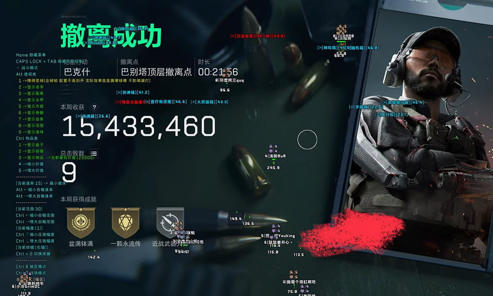 一键启动自动跳跃连段程序(W + 空格组合触发),融合透视物资定位与身法控制,实现高效战场移动